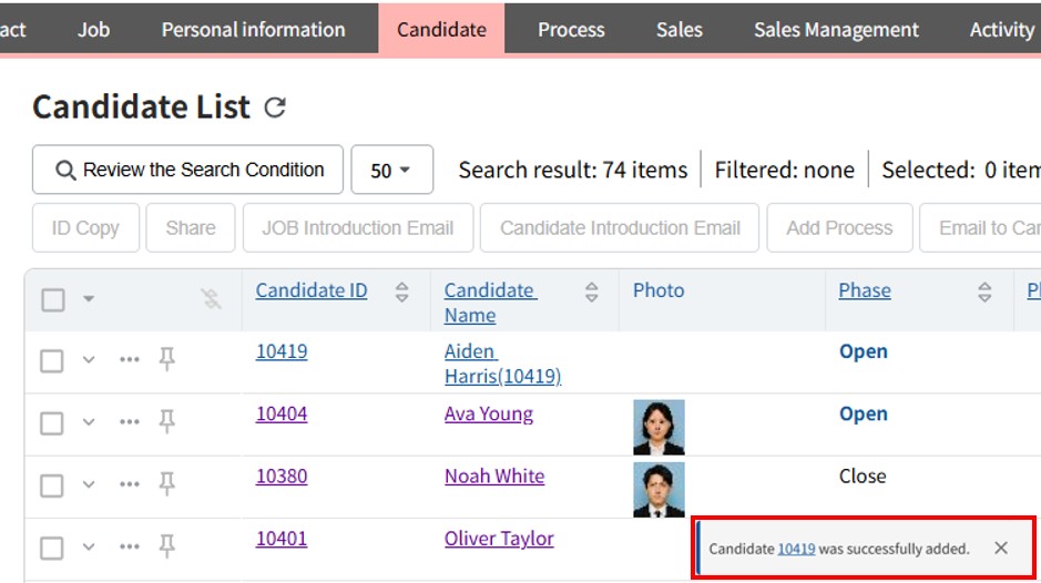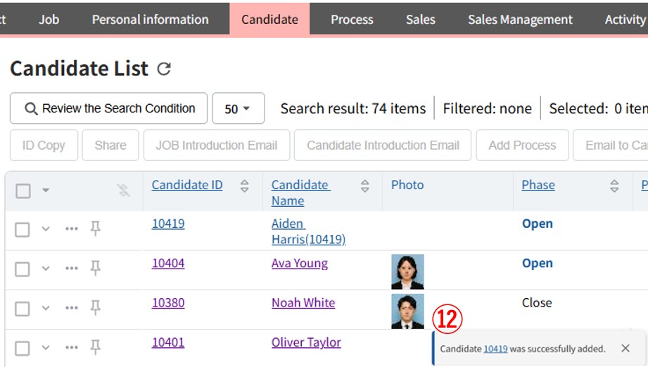 For example, in the case of candidate phase, you can manage the stage