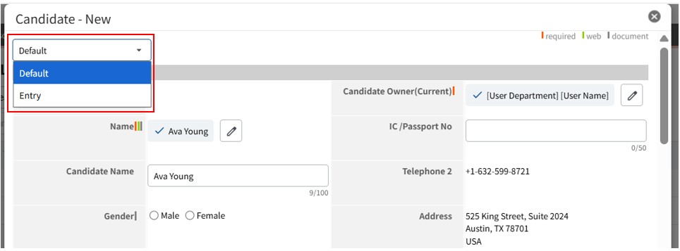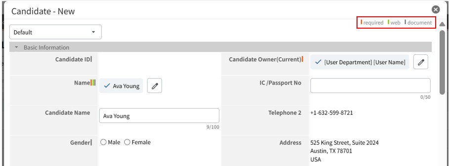 For example, this icon can be used as a marker for fields that will be reflected when creating Documents such as job postings. You can still save the record even if this field is left blank. |