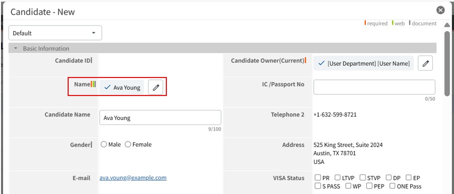 By default, Candidate Name is hidden. If you want to edit it, display the field via customization before editing.