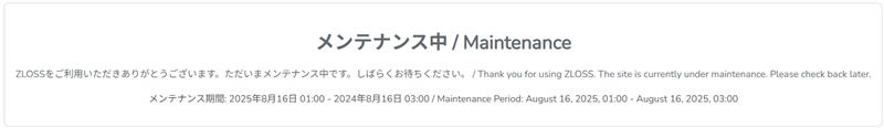 When accessing from the Sharing URLs and the ZLOSS management screen, it will display "Maintenance".