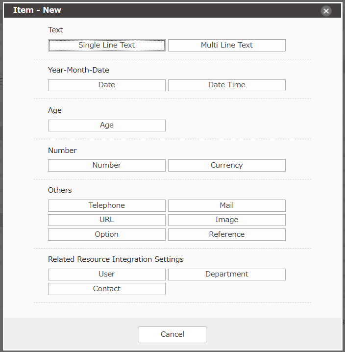 As part of adding new resources, the screen for selecting the Item Type when registering a new field in the customization interface will be partially modified.
