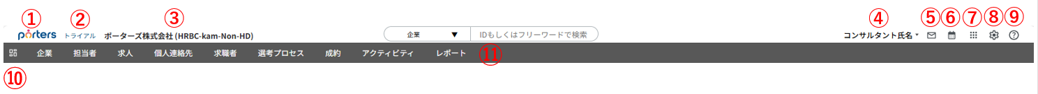 ⑪グローバルメニュー