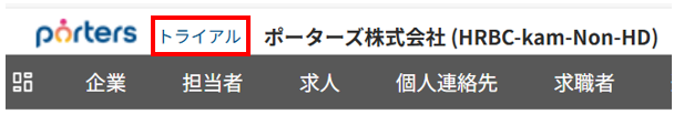 ポーターズロゴの右側に、トライアル利用中の場合は「トライアル終了まであとXX日」、