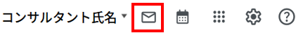 ご自身が送受信したメールを確認したい場合はこのメールアイコンをクリックすると、別タブでメールボックスが開かれます。