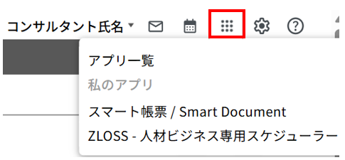 画面右上に、アプリ一覧を開くためのアイコンが表示されます。