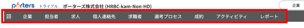 クリックすると、ご契約のアカウントや、ご利用のPORTERS環境の設定・カスタマイズに関するメニューが表示されます。
