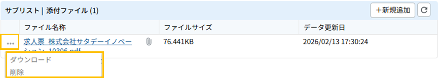 また、各ファイルのアクションメニューから、ファイルのダウンロードや削除が可能です。