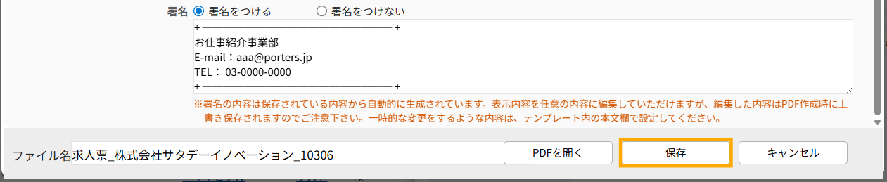 内容に問題がなければ、「保存」をクリックします。