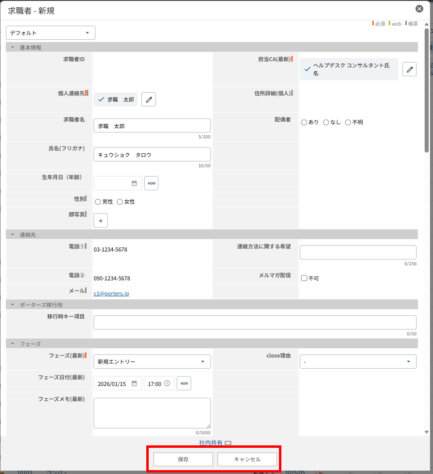保存と同時に、該当のレコードをPORTERSユーザーに共有できる機能です。