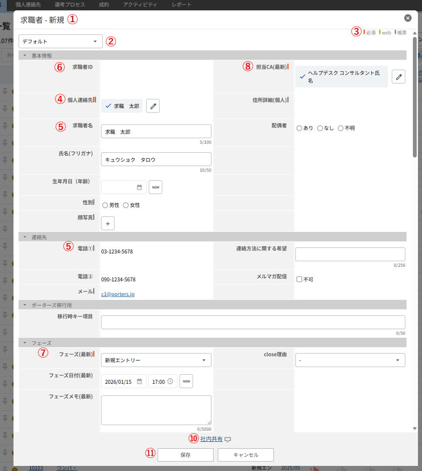 ⑪保存/キャンセル