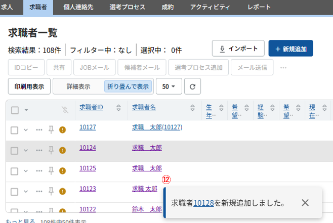 - ⑫新規追加完了ポップアップ
