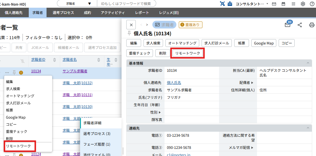 この手順で進めると、この時点で求人レコードと求職者レコードが予め紐づいた状態になっています。