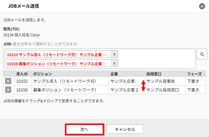 - パターン②【個別メール送信】 JOBを求職者宛にメールで送信する