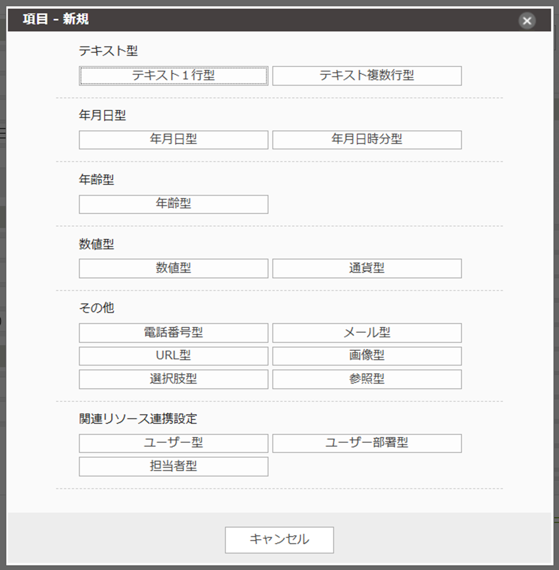 項目の新規登録時に開く 項目タイプを選ぶ画面が、一部変更されます。