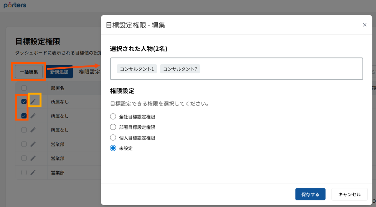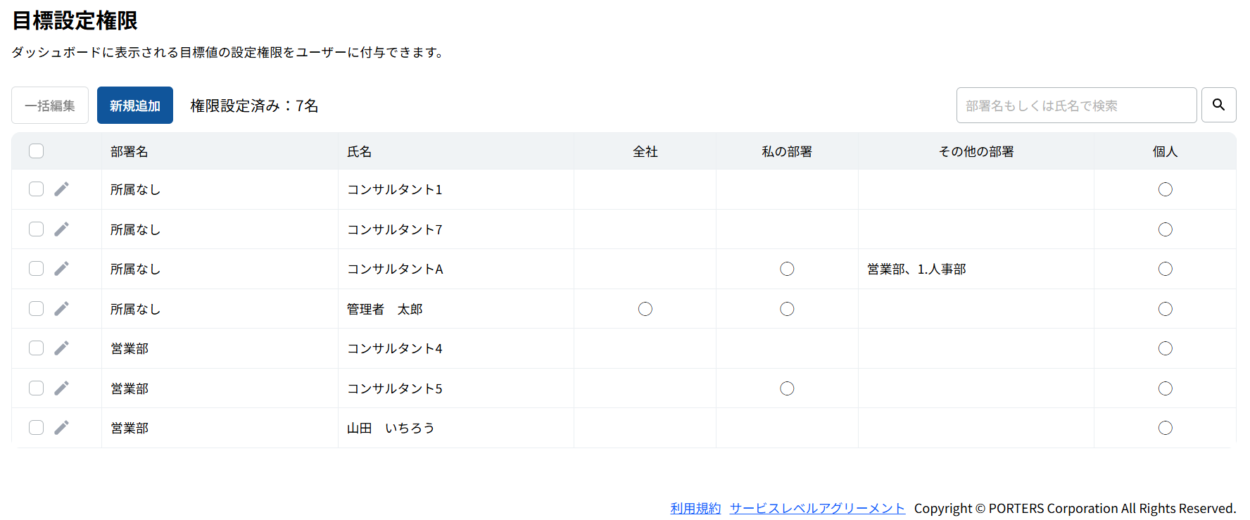 ダッシュボード目標設定の権限付与(システム管理者用)