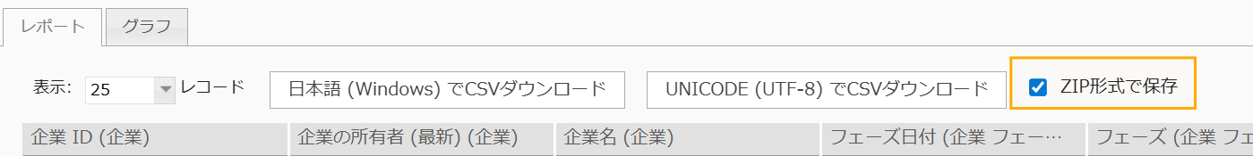 1.レポートにて、CSVダウンロードをする際、ZIP形式で保存をするか否かを選択できるようになります。
