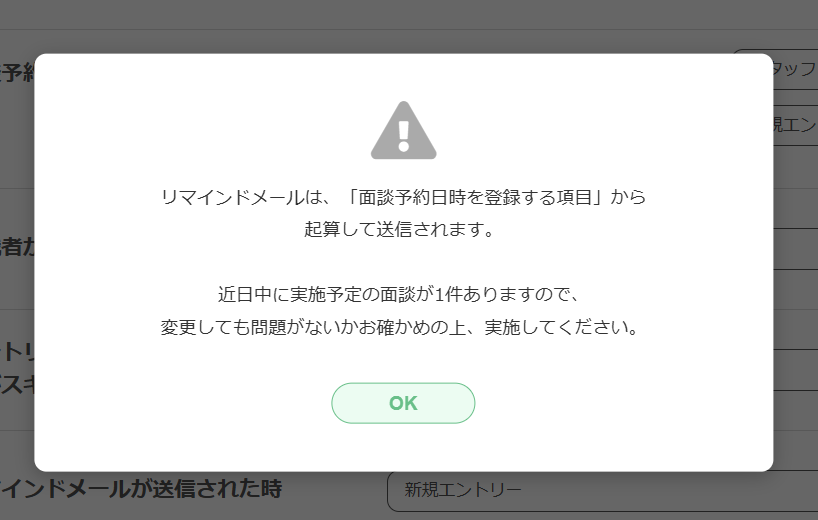 変更する際、近日中に実施予定の面談がある場合は、注意喚起のメッセージが表示されます。