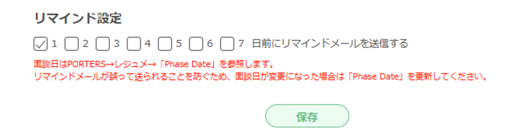 ②リマインドメールと、リマインド設定の注意文言