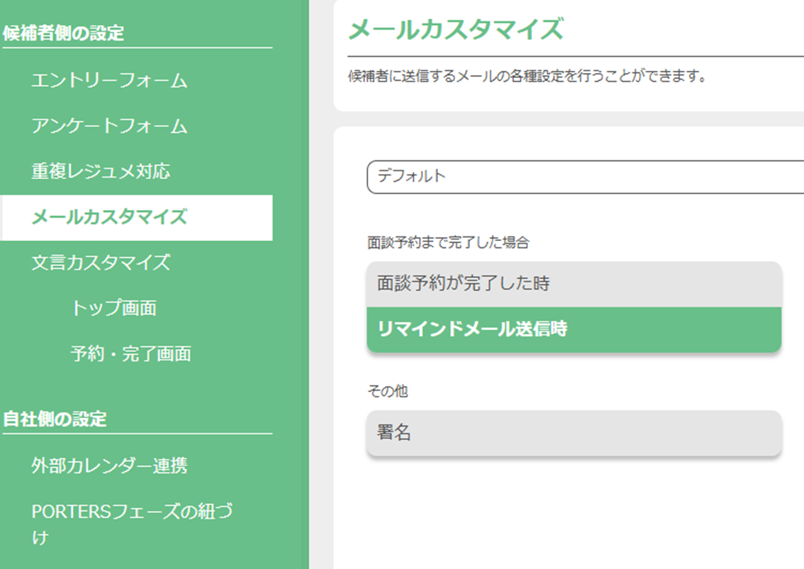 また、メールカスタマイズ > 『リマインドメール送信時』画面の最下部『リマインド設定』にて、